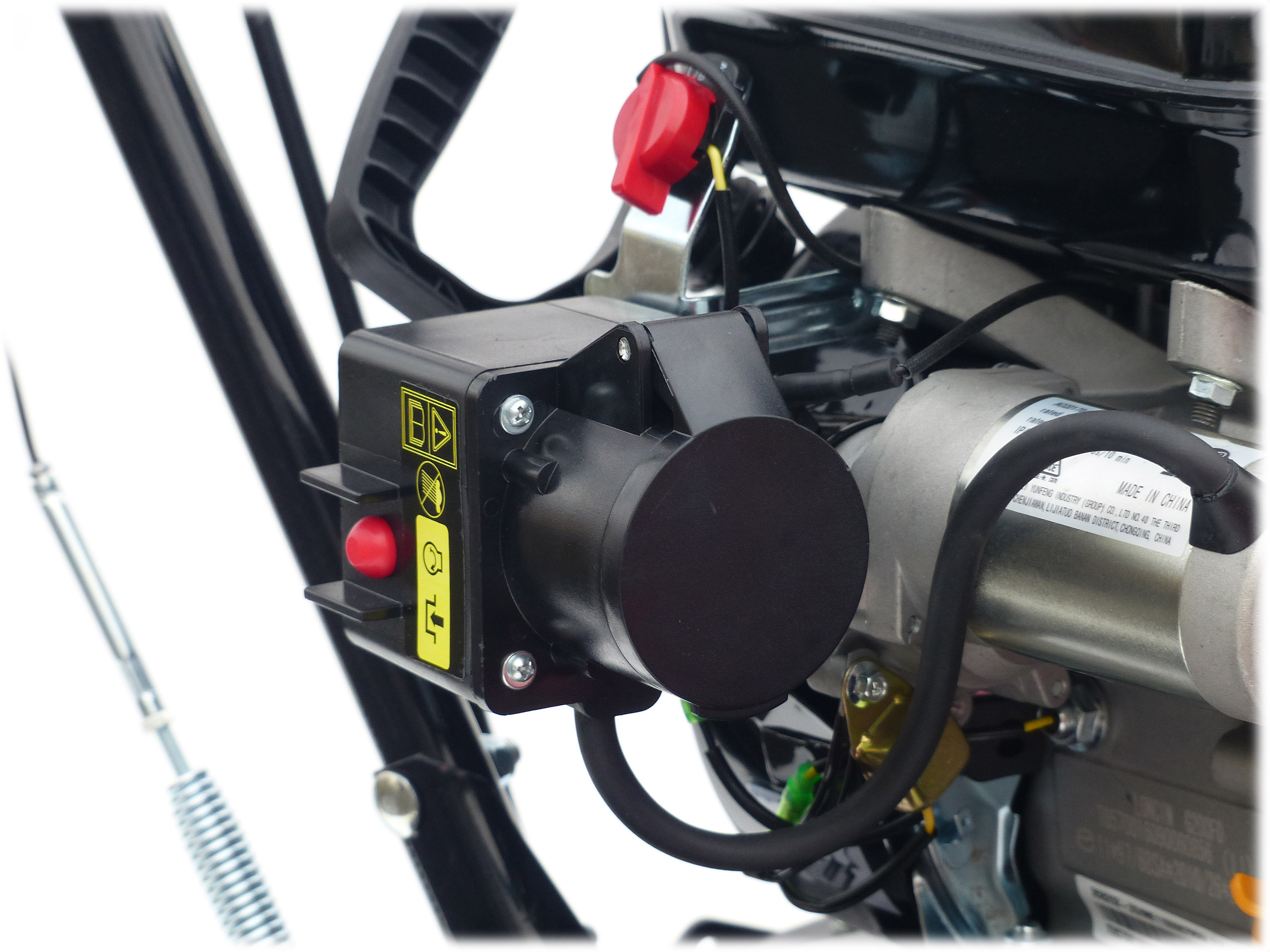 Unsere Kehrmaschine hat zudem einen Eigenantrieb und kann zwischen 5 vorwärts und 2 Rückwärtsgängen gesteuert werden. Ausserdem ist dieser mit einem  LONCIN Motor ausgestattet. LONCIN Motoren haben Ihre Qualität bereits mehrfach bewiesen. Das starten des Motors ist kinderleicht und wird durch einen  230V Elektrostarter angelassen, oft genügt aber auch nur ein leichtes ziehen am Seilzugstarter um das Kraftpaket mit seinen 6,5PS zu starten (falls  keine Stromzufuhr vorhanden).