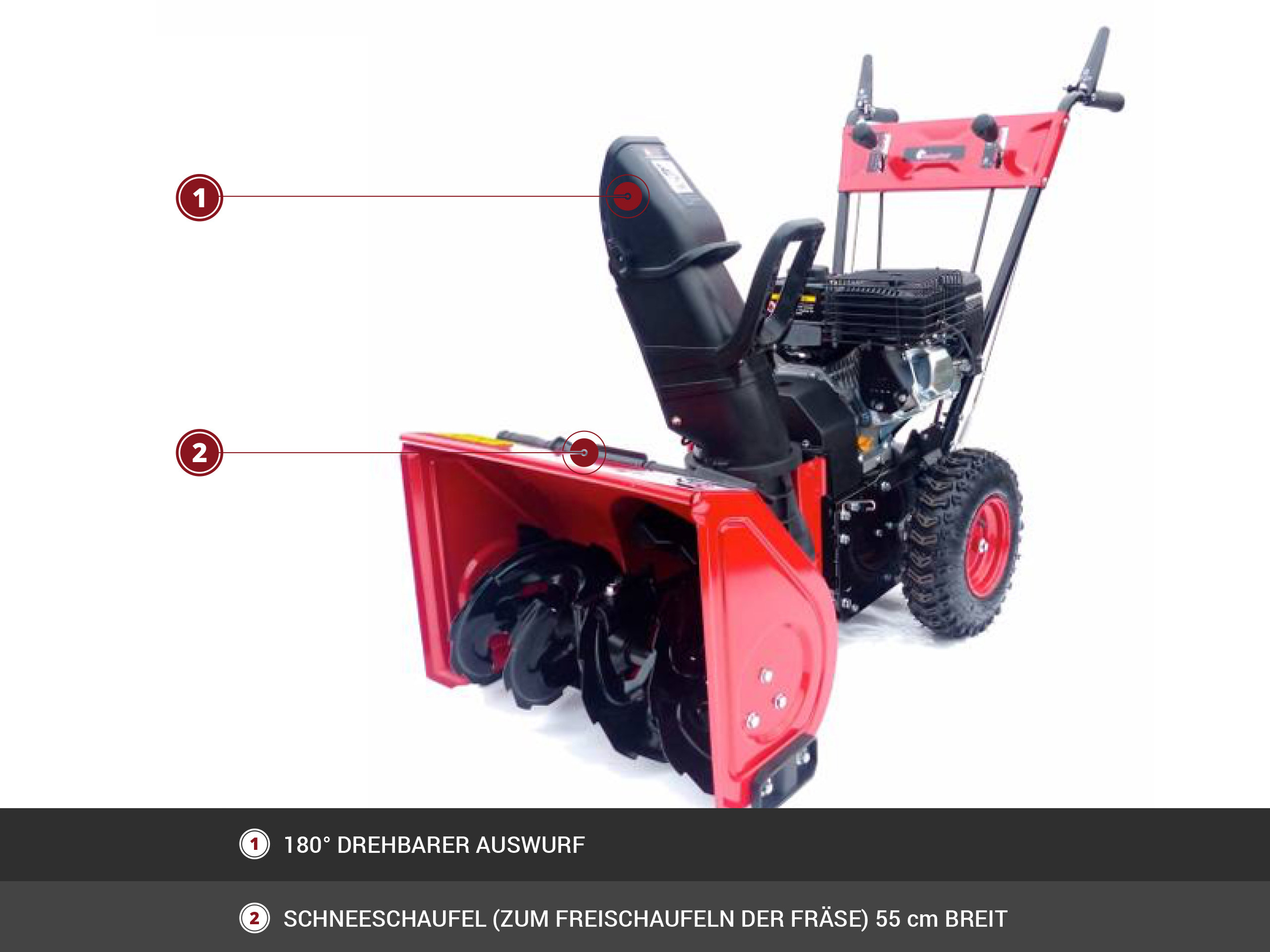 • Inkl. Auffangbehälter, Schneeschild und Schneefräse
